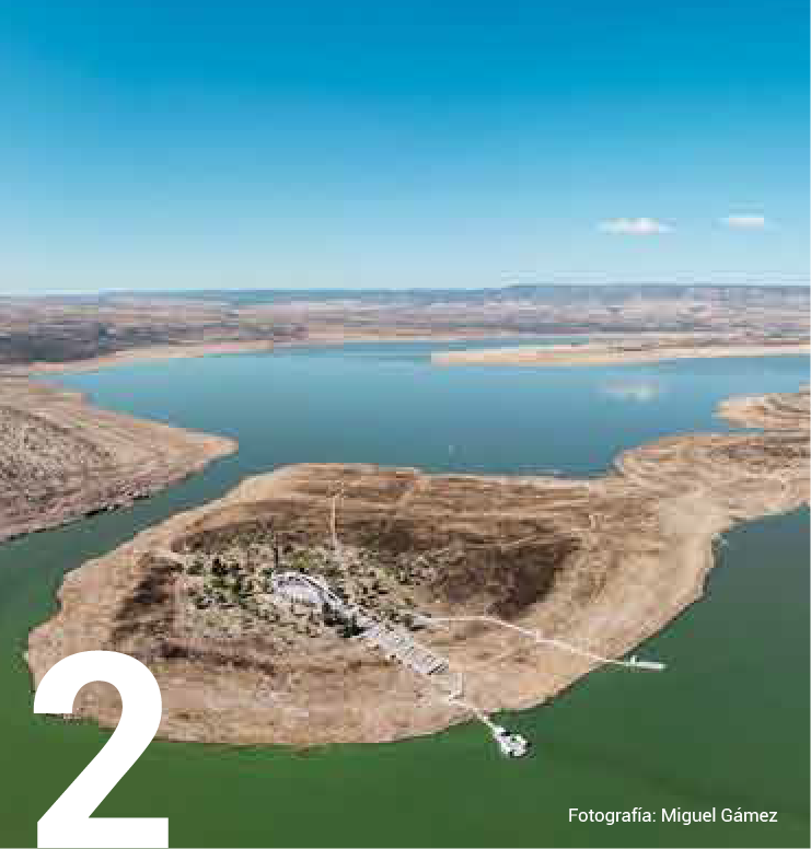 Cuando el nivel del agua desciende, la cúpula y la torre de la capilla emergen tímidamente, como si el tiempo les concediera instantes fugaces para asomarse al presente. Es un espectáculo que parece arrancado de un sueño, donde lo místico y lo tangible se entrelazan para dibujar en la superficie un reflejo de lo que fue y nunca dejó de ser.