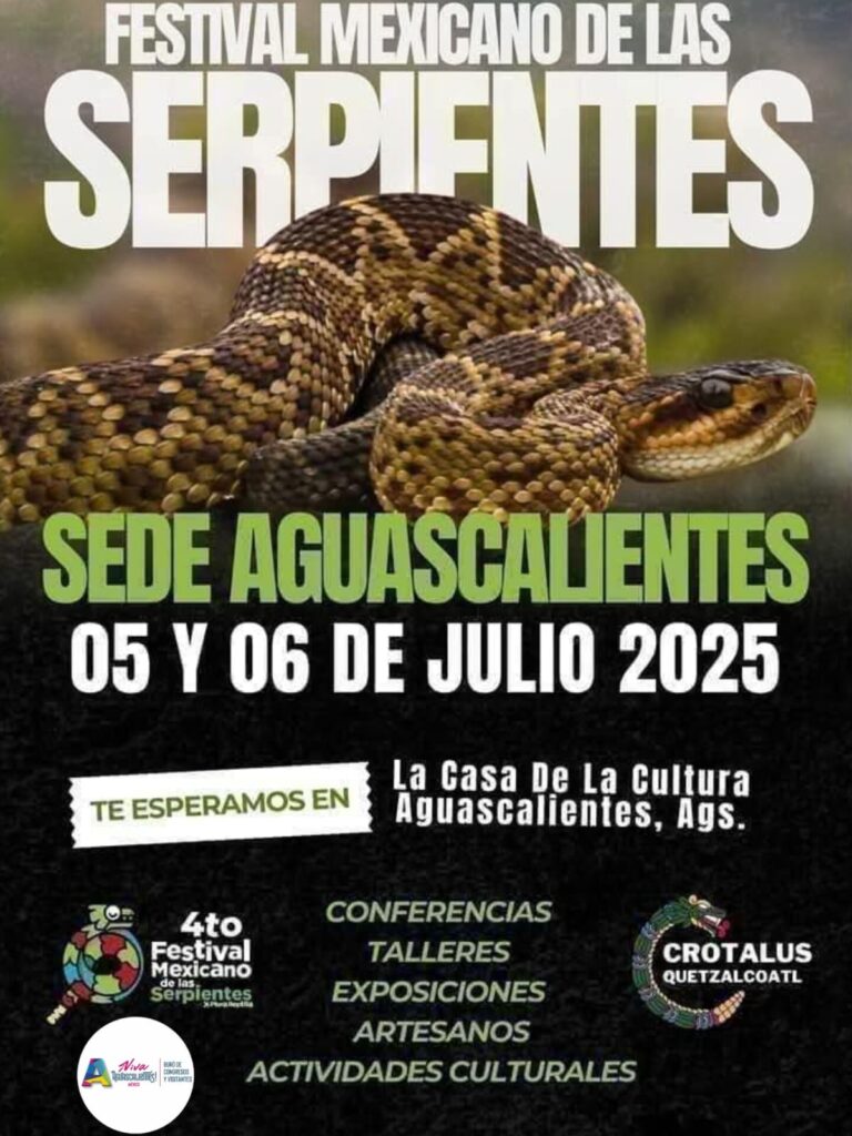 Aguascalientes será sede del 4.º Festival Mexicano de las Serpientes, que se llevará a cabo los días 5 y 6 de julio en la Casa de la Cultura de Aguascalientes. La entrada es gratuita y habrá actividades para toda la familia. De las 9:00 de la mañana a las 6:30 de la tarde se ofrecerán […]